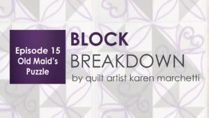 Episode 15 of the Block Breakdown focuses on different ideas for quilting an Old Maid’s Puzzle Block. Find great tips and ideas on how to quilt these blocks from Quilt Artist Karen Marchetti.