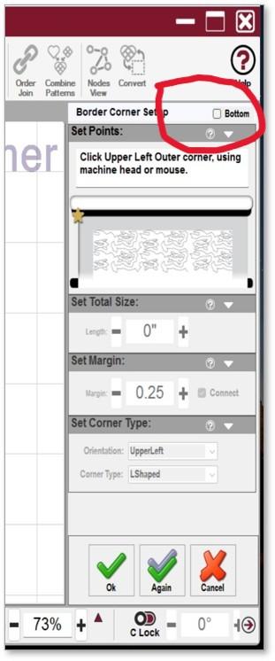 Below is the link to the bottom border set up video…you have two options, you can rubber stamp your top border and rotate it, and place it in the bottom. (Use your handles to make any necessary adjustments) Or you can re-do the border corner set up, BUT before you start clicking out the spots indicated on the CAD screen, took over at the set up box, there is an option for ‘bottom’. check that button and then you can click out the bottom bo